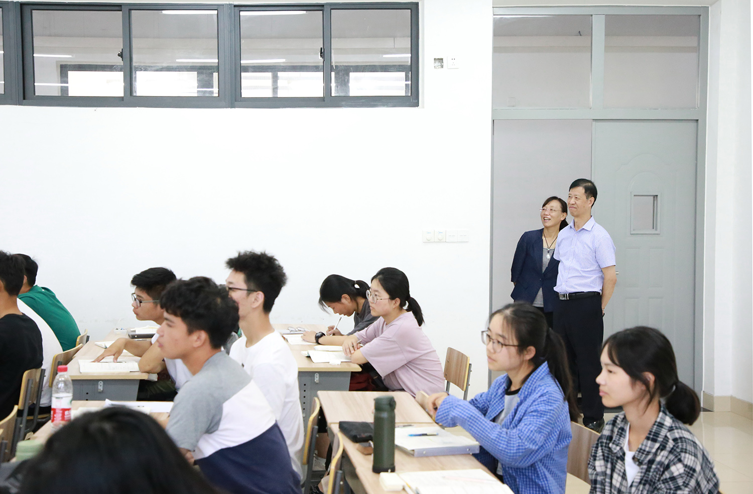 上午9时,徐校长一行先后来到尚学园3号、2号教学楼,了解正式上课第一天的课程安排、教学环境、教学设备安排、学生出勤、教师到岗及课堂秩序等情况。徐绪卿对秩序井然的课堂和精神饱满的师生表示满意,希望各教学单位继续发扬好的教风、学风,再接再厉,顺利完成各项教学任务。
