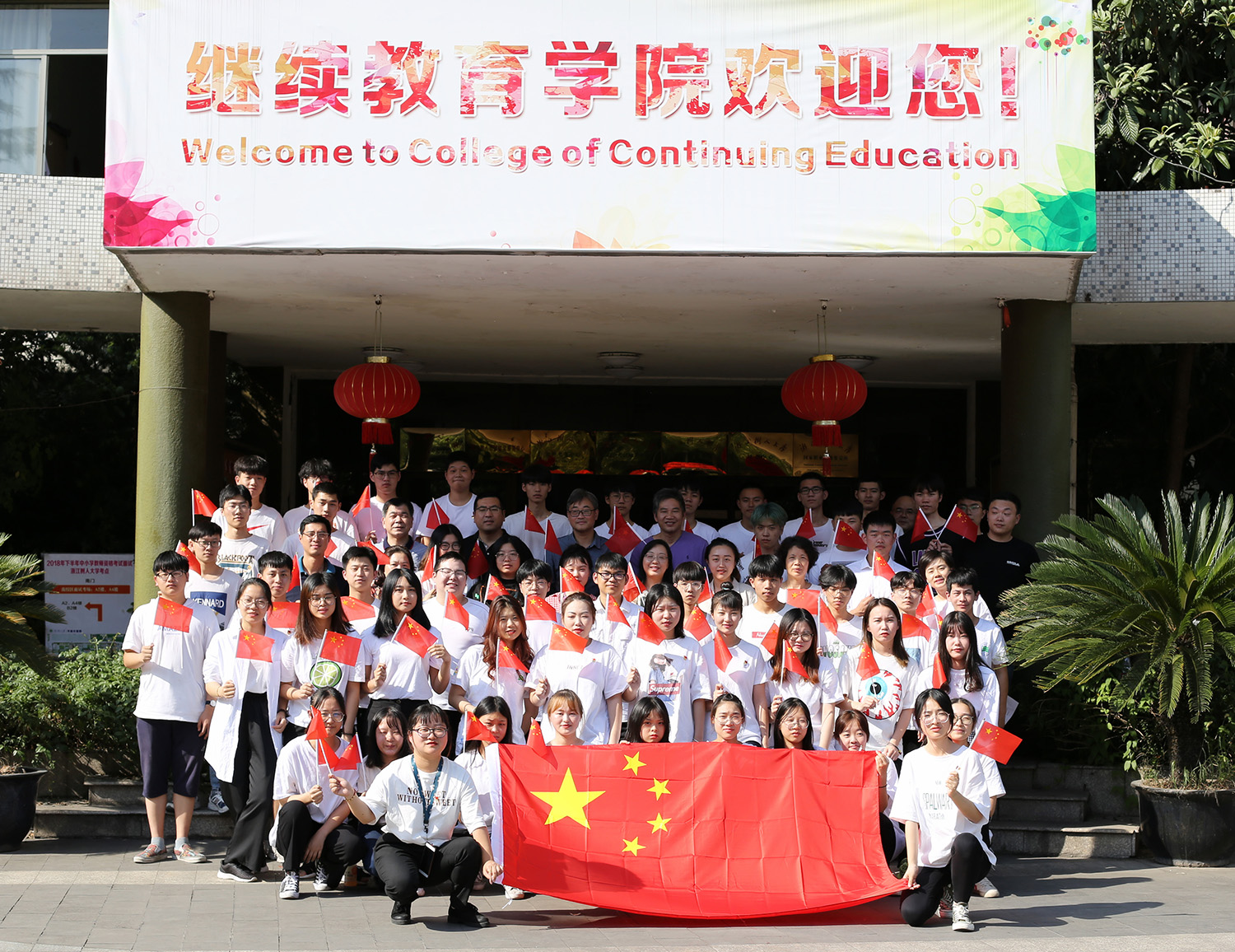 会后,继续教育学院共50余名师生在教学楼举行庆祝建国70周年活动——师生同唱《我和我的祖国》。伴着高昂的音乐,师生们挥舞着手中的国旗,用歌声唱出对祖国的热爱,用歌声向祖国表白,献礼新中国成立70周年。