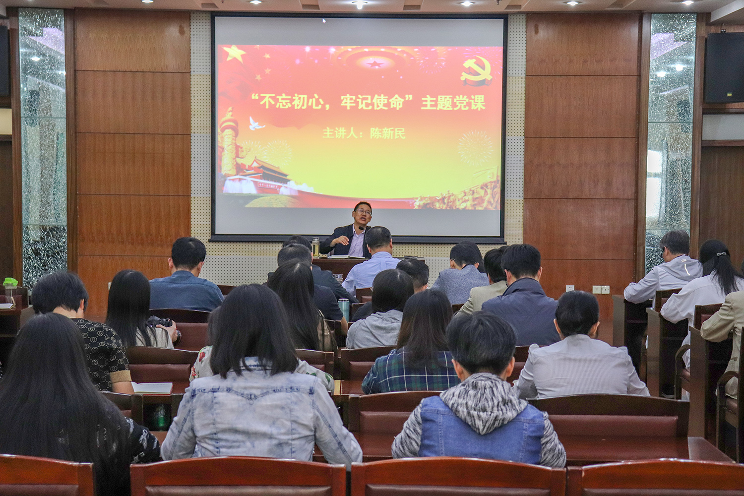 为更好地开展“不忘初心,牢记使命”主题教育,深入学习贯彻习近平新时代中国特色社会主义思想,提升学校科研工作水平、发挥全体党员在推进新时代科研工作中的引领作用,2019年10月17日下午,陈新民副校长作题为“提振学科科研工作,服务学校内涵发展——学习习近平五大发展理念”专题党课。科研处、发展规划处、图信中心、继续教育学院全体党员同志聆听学习。部分党外人士应邀参加党课。