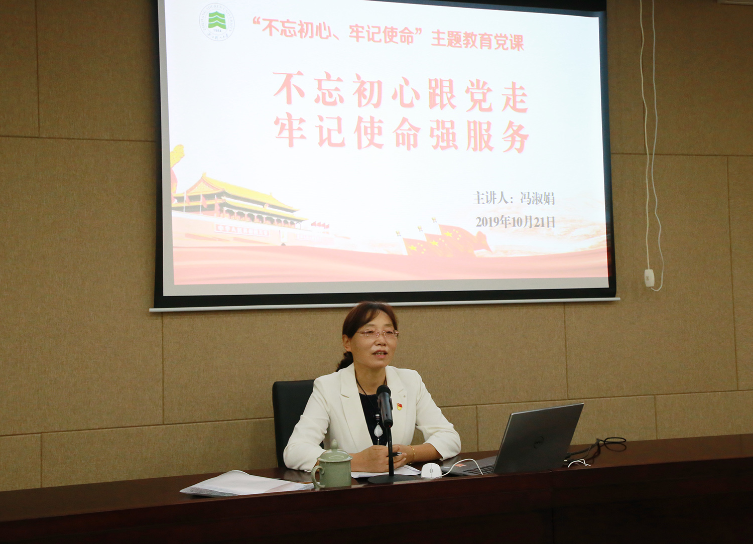 为深入贯彻学校“不忘初心、牢记使命”主题教育各项部署,10月21日下午,校长助理冯淑娟在杨汛桥校区报告厅为校区党员、师生代表作了一场生动、深刻、精彩的“不忘初心、牢记使命”主题教育专题党课报告。基础学院党委书记邱辉明出席,杨汛桥校区部分中层干部,管委会、基础学院、后勤服务相关单位同志和师生代表等近60人参加。