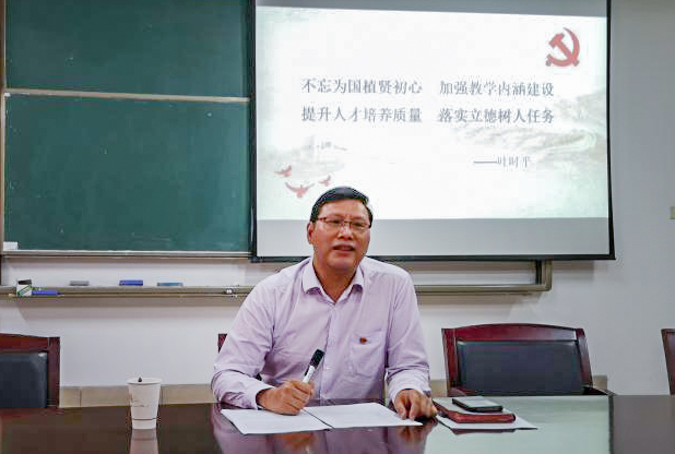 根据学校“不忘初心,牢记使命”主题教育活动部署安排,10月22日下午,副校长叶时平在A1-305党员之家作了一次题为“不忘为国植贤初心加强教育内涵建设 提升人才培育质量 落实立德树人任务”的专题党课。教务处、教学质量监控中心、资产与实验室管理处以及人文与外国语学院全体教工党员,学院博士、教授等聆听学习。