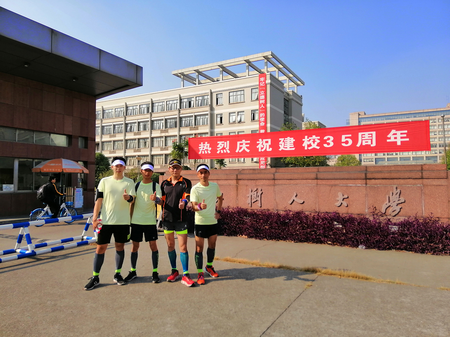2019年10月24日,丹桂飘香,层林尽染,所有的一切都显得很详和安宁,但是这一天在树大却上演了“用脚步丈量双桥”不平常的一幕,事后师生们知晓后纷纷点赞祝贺。原来在这天下午,平常喜好跑步的校办副主任冯伟、计算机173班学生蒋静文、杜登基、91级无线电专业校友陈跃南等一行4人,他们从浙江树人大学拱宸桥校区一路奔跑到了杨汛桥校区,耗时4小时奔跑35公里,用一步一步的脚印真情表白树大。
