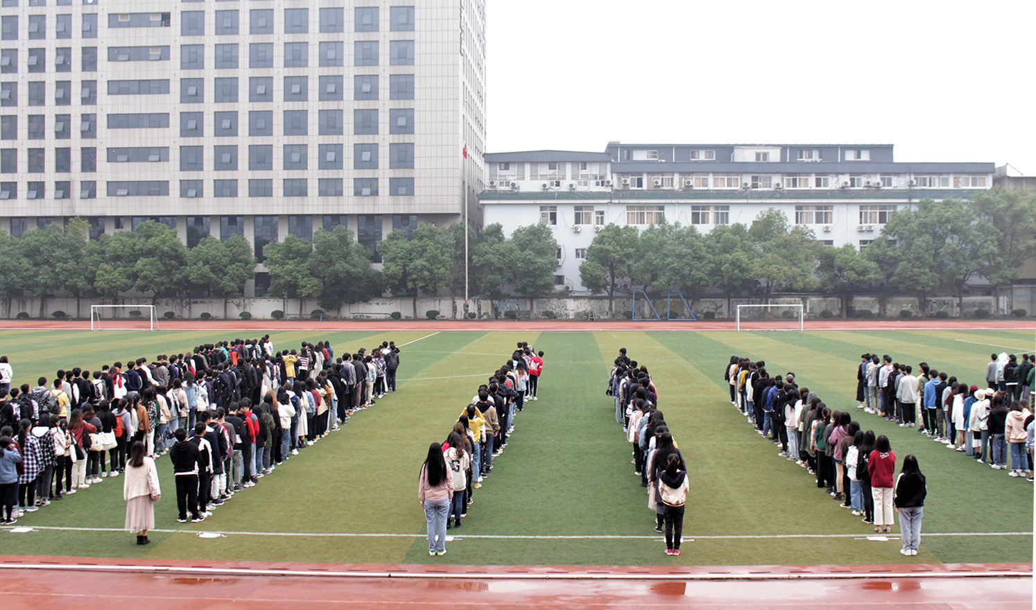 伴随着雄壮的《义勇军进行曲》,在全体师生的注目礼下,鲜艳的五星红旗冉冉升起,迎风飘扬在田径场上空。
