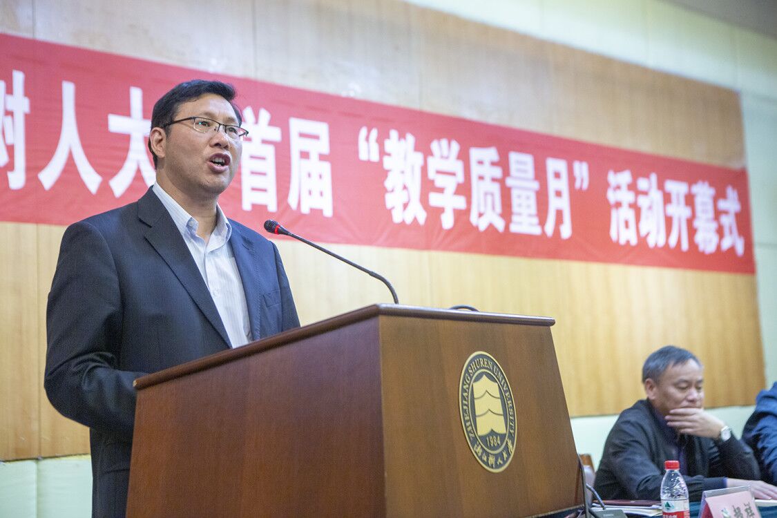 副校长叶时平代表学校对首届“教学质量月”活动的顺利开幕表示祝贺,对浙江工商大学岑杰博士和参会教师们表示热烈欢迎和诚挚感谢,对获奖教师们表示热烈祝贺,并对首届“教学质量月”活动提出了三点希望和要求,一是迎接新挑战,树立“质量意识”,新时代高等教育内涵式发展给本科教育提出了新要求,高校教师第一身份是老师、第一工作是教书、第一责任是上课,老师要努力做到政治过硬、业务精湛、育人高超、技术娴熟,主动承载起传播知识、传播思想、传播真理,塑造灵魂、塑造生命、塑造新人的时代重任。每位教师都应该将质量内化为我们的共同价值追求和自觉行为;二是实施新举措,推动“质量革命”,要改革传统的教与学形态,把育人水平高超、现代技术方法娴熟作为自我素质要求的一把标尺,广泛开展探究式、个性化、参与式教学,推广翻转课堂、混合式教学等新型教学模式,把沉默单向的课堂变成碰撞思想、启迪智慧的互动场所,让学生主动地“坐到前排来、把头抬起来、提出问题来”;三是优化课程设置,打造双百“金课”,课程设置要根据科技发展趋势、根据行业发展需求、遵循内在知识与教学规律,主动谋划互联网+、大数据等现代学习体系,推进学习方式的创新,重视教学品质,大力推动有品质的教育,打造双百“金课”,消灭“水课”。