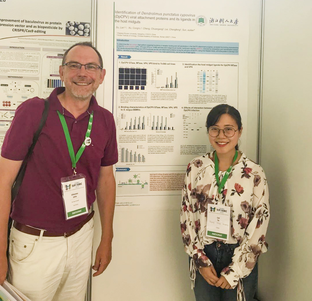 我校树兰国际医学院苏岚博士参加了本次国际会议并做了题为“马尾松毛虫质型多角体病毒吸附蛋白的鉴定及其与宿主中肠蛋白的相互作用”的海报汇告,研究揭示了病毒的A-spike和B-spike蛋白在参与病原入侵感染过程中的重要作用,并筛选了病毒潜在的中肠受体蛋白。报告引起了来自英国、美国、德国、法国、日本及泰国等与会专家的关注和热烈讨论,苏岚博士一一进行了答复,会议期间还与病毒感染研究领域的Juan Ferré、Jehle Johannes A、中科院病毒所胡志红、孙修炼、浙江大学应盛华等知名科学家进行了广泛的交流。