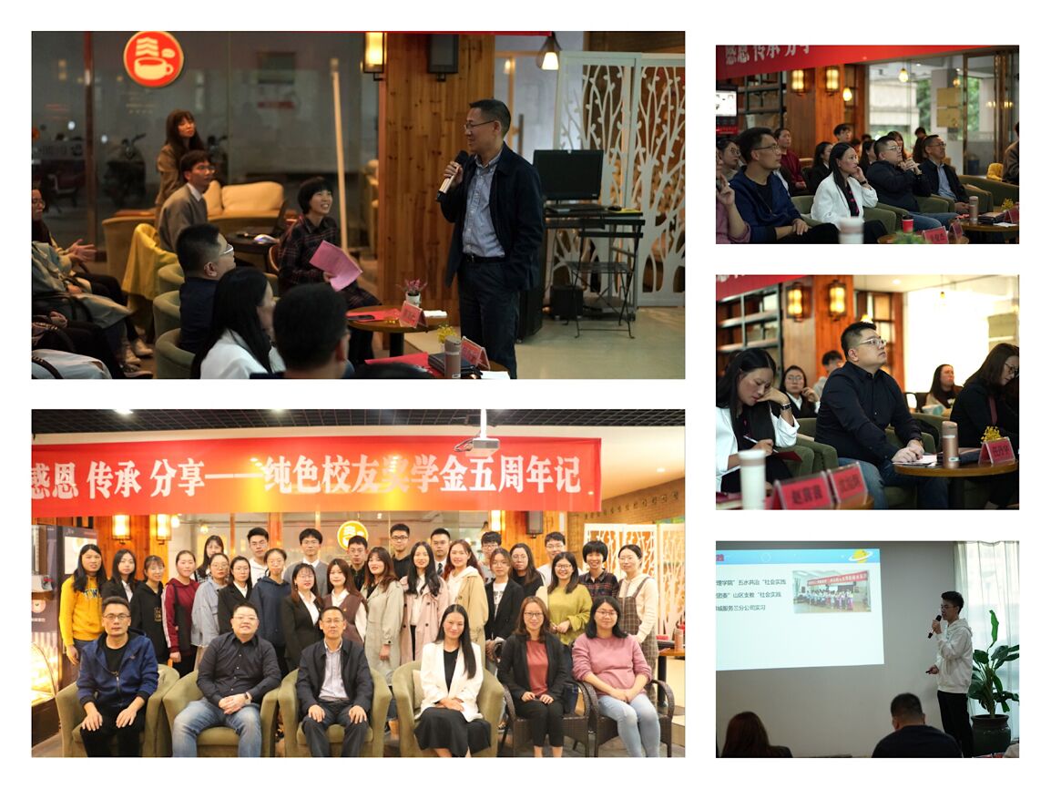 10月31日,感恩、传承、分享——纯色校友奖学金五周年庆典暨2019年纯色校友奖学金联评会在创咖如期举行。02届工商管理校友、纯色校友奖学金的发起人任丹宇、沈旭炯夫妇,副校长陈新民、管理学院主持工作副院长吴俊杰、党委副书记赵茵茵和学院师生代表出席庆典。庆典由学院校友分会负责老师朱砚屏主持。