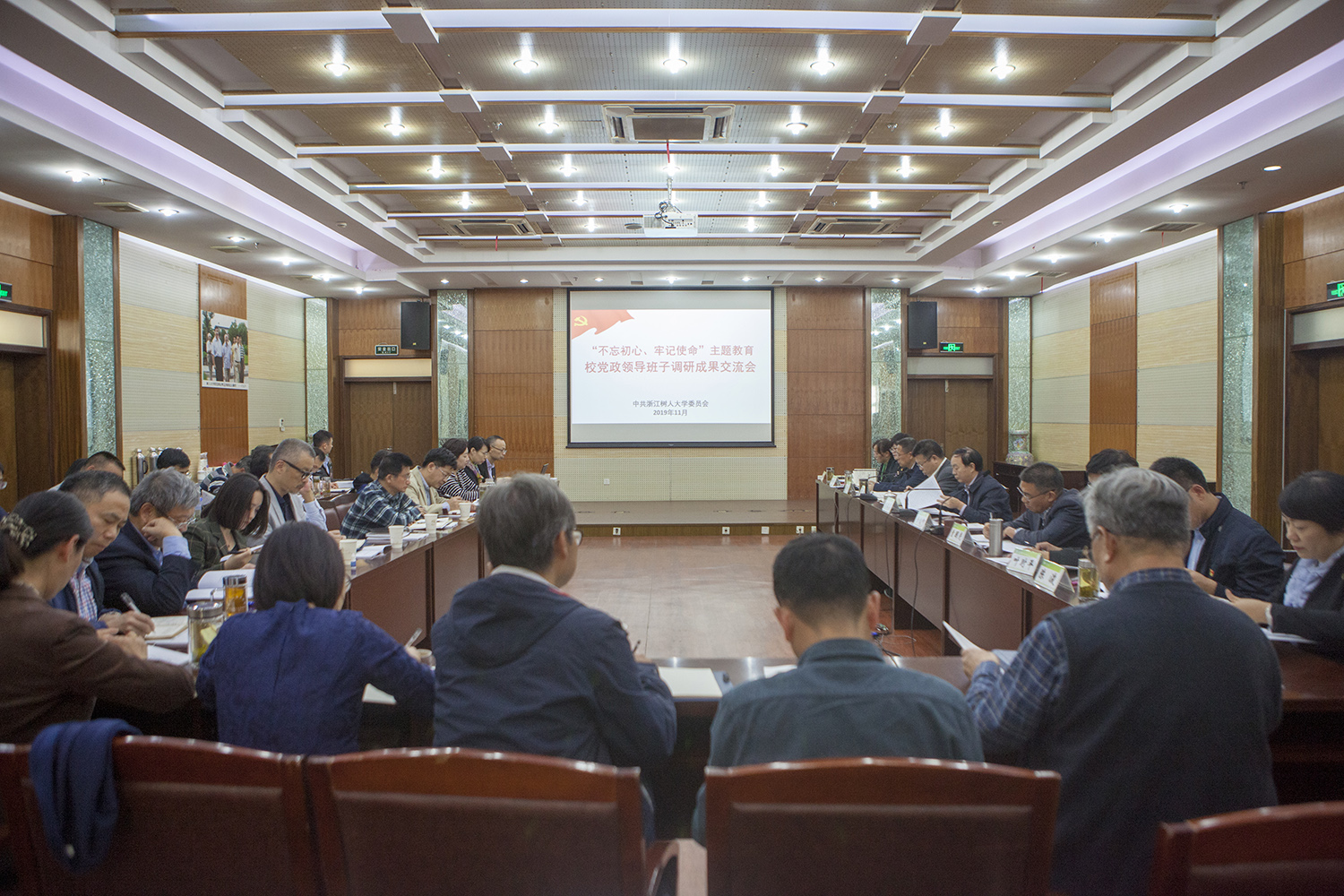 按照省委、教育厅党委部署和学校“不忘初心、牢记使命”主题教育工作安排,11月6日下午,学校在行政楼6楼会议室举行校领导班子主题教育调研成果交流会。省教育厅主题教育督导组组长、浙江师范大学原党委书记陈德喜到会指导并讲话,督导组成员教育厅组织处四级调研员王永芬列席会议,交流会由校党委书记章清主持。