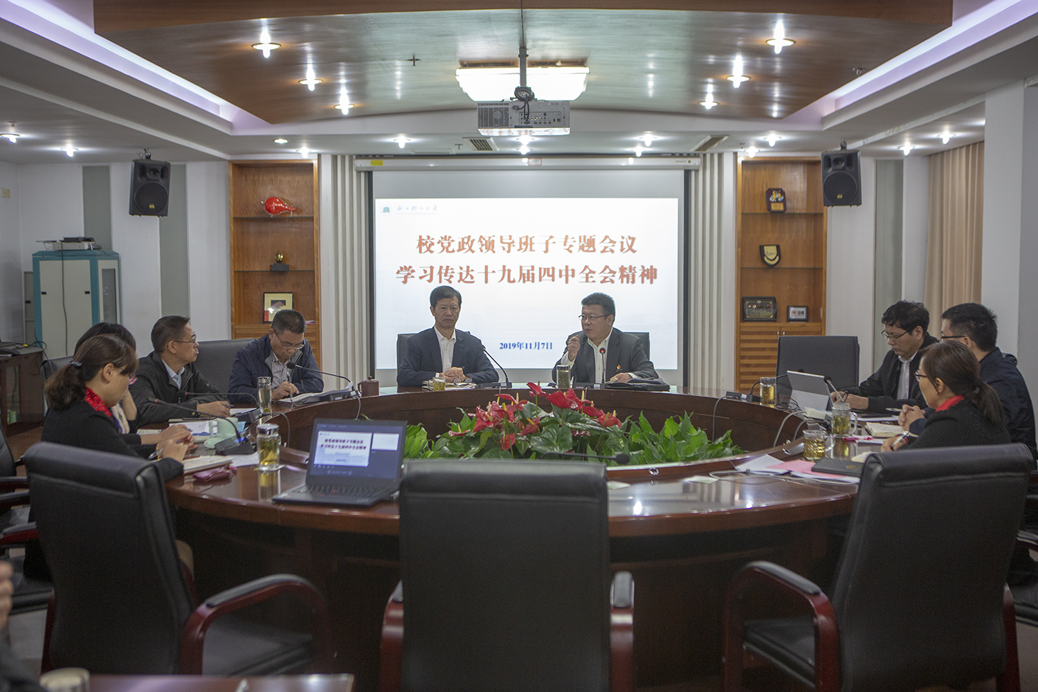 11月7日上午,校党委书记章清主持召开校党委专题学习会,传达党的十九届四中全会精神,学校党政领导班子成员参加学习。