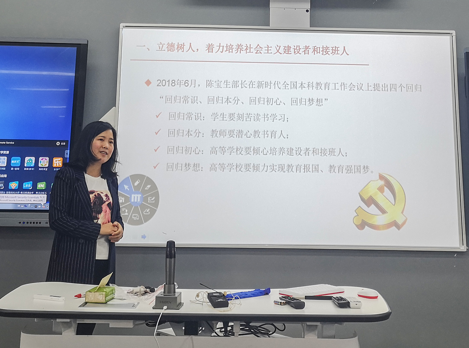 陈超祥讲授了题为“不忘教育初心,牢记育人使命,提升日常教学质量”的专题党课,她讲到,作为一名教育教学工作者,我们要坚持立德树人,着力培养社会主义建设者和接班人;牢记育人使命,推进高质量教学运行。