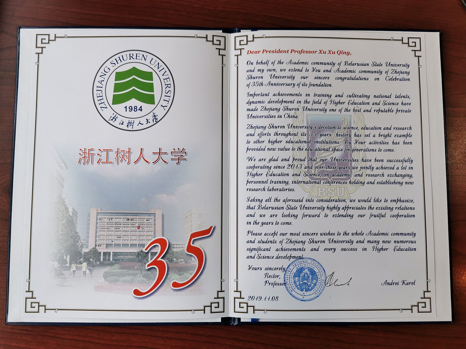 建校35周年之际,我校收到了来自于白俄罗斯、英国、德国、斯里兰卡、日本、韩国、台湾等国(境)外多所高校的祝贺,并有10余名国(境)外校长、专家亲临学校参加活动,为校庆活动增添了一道亮丽的风景线。同时,也大大加深了友好学校之间的合作交流,促进了我校的国际化办学进程。