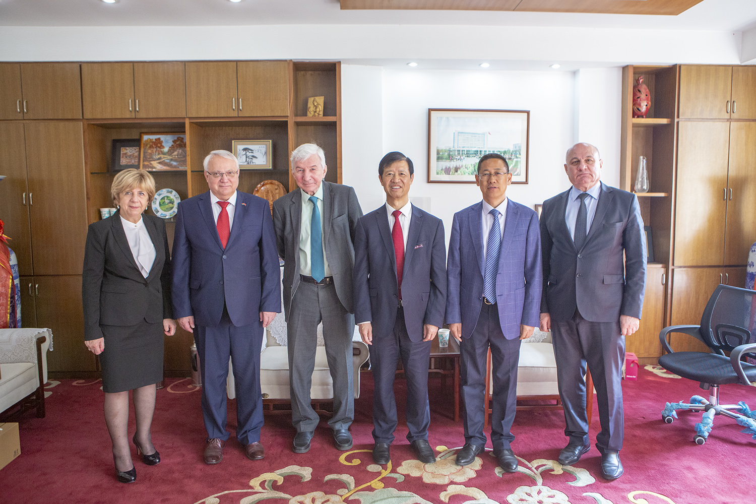 最后,徐校长会见了我校老朋友白俄罗斯国立大学第一副校长阿列克•伊瓦斯凯维奇,以及该校孔子学院副院长瓦查斯拉夫•列奥诺夫。陪同参加会面的还有该校化学系副主任萨维斯卡娅塔兹安娜·萨维斯卡娅教授,物理化学问题研究院纤维素及其衍生物研究实验室主任达兹米特瑞·格林斯潘教授。徐校长和阿列克副校长共同回顾了自2013年以来,两校友好合作的历史以及在科技合作上的突出成绩。徐校长感谢白大领导一直以来对于我校国际化师资队伍建设和科技水平提升的支持和帮助。瓦查斯拉夫庄重地传达了安德烈·卡罗尔校长的祝贺,同时递呈了贺信。安德烈校长在贺信中说,自2013年以来,两校在高等教育和科学领域,在学术和科研合作、师资培训、共同举办国际会议等方面取得了卓越成绩。他对我校35周年校庆表示热烈祝贺,希望两校继续深入友好地合作,取得新成果。徐校长请阿列克副校长转达对安德烈校长的问候和感谢,并热情邀请安德烈校长适时来访我校。随后,徐校长代表学校与白俄罗斯国立大学环境研究所签订了合作协议。