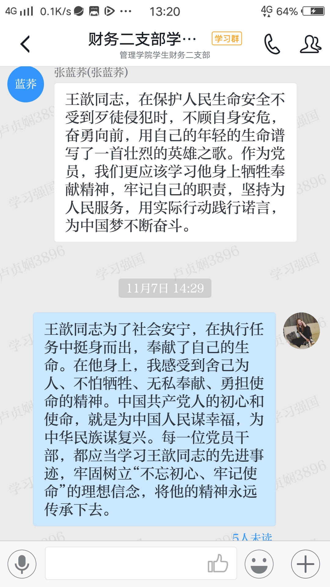 “王歆同志不忘初心、牢记使命,不畏生死写忠诚,我要向他学习,在平凡的工作岗位上做出不平凡的业绩来!”作为省级先进党支部——财务管理第一学生党支部的支委周思思在组织支部开展学习王歆英烈先进事迹后,饱含热泪地向支部成员诉说心声。近日来,管理学院师生党支部积极响应学校党委发出的向王歆同志学习的号召,组织全体党员开展“学习英雄王歆,不忘初心担使命”主题党日活动。