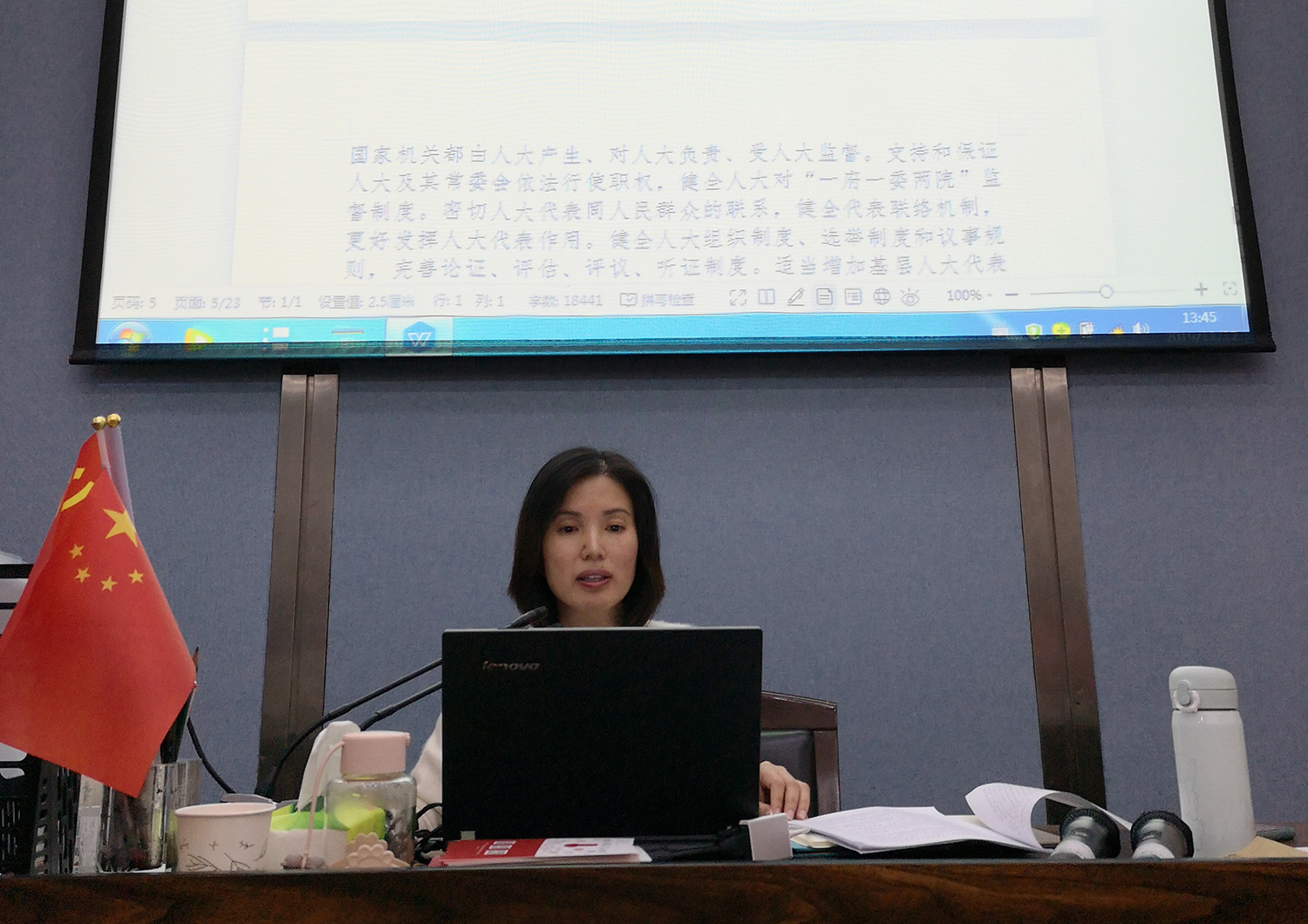 活动第一阶段,学院主持党委工作副书记应海儿带领大家认真学习了《十九届四中全会公报》。她指出,十九届四中全会是在新中国成立70周年之际、在“两个一百年”奋斗目标历史交汇点上,召开的一次具有开创性、里程碑意义的重要会议,是以习近平同志为核心的党中央立足当前、着眼长远作出的重大决策部署,各支部要在下阶段的主题教育活动中更深入地开展学习,深刻领会文件精神。她强调,一要统一思想,提高政治站位;二要加强学习,提高理论水平;三要以党建引领,促进中心工作。