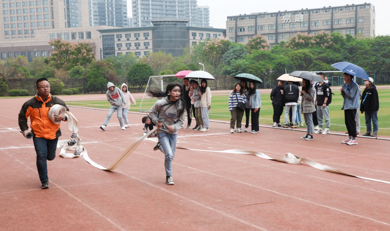 演练结束后进行了现场灭火体验。师生员工纷纷拿起灭火器亲身体验灭火,掌握灭火器使用要领。最后,各二级学院安全员、辅导员、教师和学生代表、后勤保障处员工组成的11支队伍在北校区田径场开展了一场别开生面的消防趣味运动会。现场加油声、欢呼声此起彼伏,大家在趣味比赛中掌握了消防水带连接和穿消防服的新技能。师生们纷纷要求今后多举办一些寓教于乐的比赛,在趣味中学习成长。
