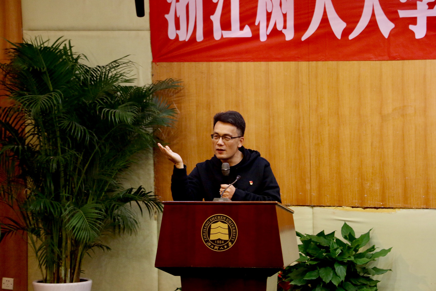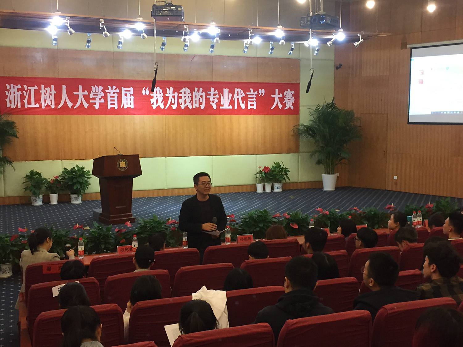 决赛现场,学生成长指导中心主任何怡雯、会计金璐旻、工业设计范彬彬、会展方微、汉语言文学孙旭辉、老年服务与管理赵路国、生物工程陈虹等专业评委倾情助阵。管理学院主持工作副院长吴俊杰教授出席决赛并发表热情洋溢的讲话,他首先回顾了建校35周年来,树人大学坚守为国植贤的初心、践行立德树人的使命的耕耘历程,从最初的艰难办学,到今天13个二级学院,47个本科专业,8个专科专业,可谓是“栉风沐雨、桃李天下。”吴院长强调专业是“特定领域的知识综合”,没有好坏之分,只有适合与否。“世事洞明皆学问,人情练达即文章”,只有让知识从一本书一页纸一句话的凝练,回到一句话一页纸一本书的拓展,才算真正的毕业。他用管理学调节变量结果——“增强”寄语在座同学,热爱专业、永不言弃,带着树大的校训坚守职业道德,为社会发展做贡献。