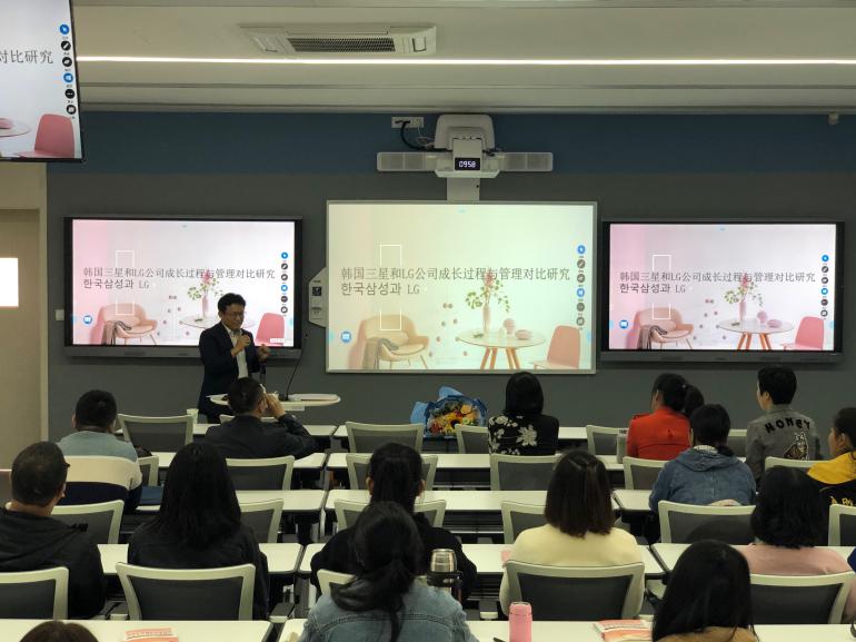 11月14日上午,A4-201智慧教室座无虚席,管理学院邀请韩国嘉泉大学崔明哲教授作了“韩国三星和LG公司成长与管理对比研究”的主题讲座,讲座由管理学院主持工作副院长吴俊杰教授主持,管理学院80多位师生参加了此次讲座。