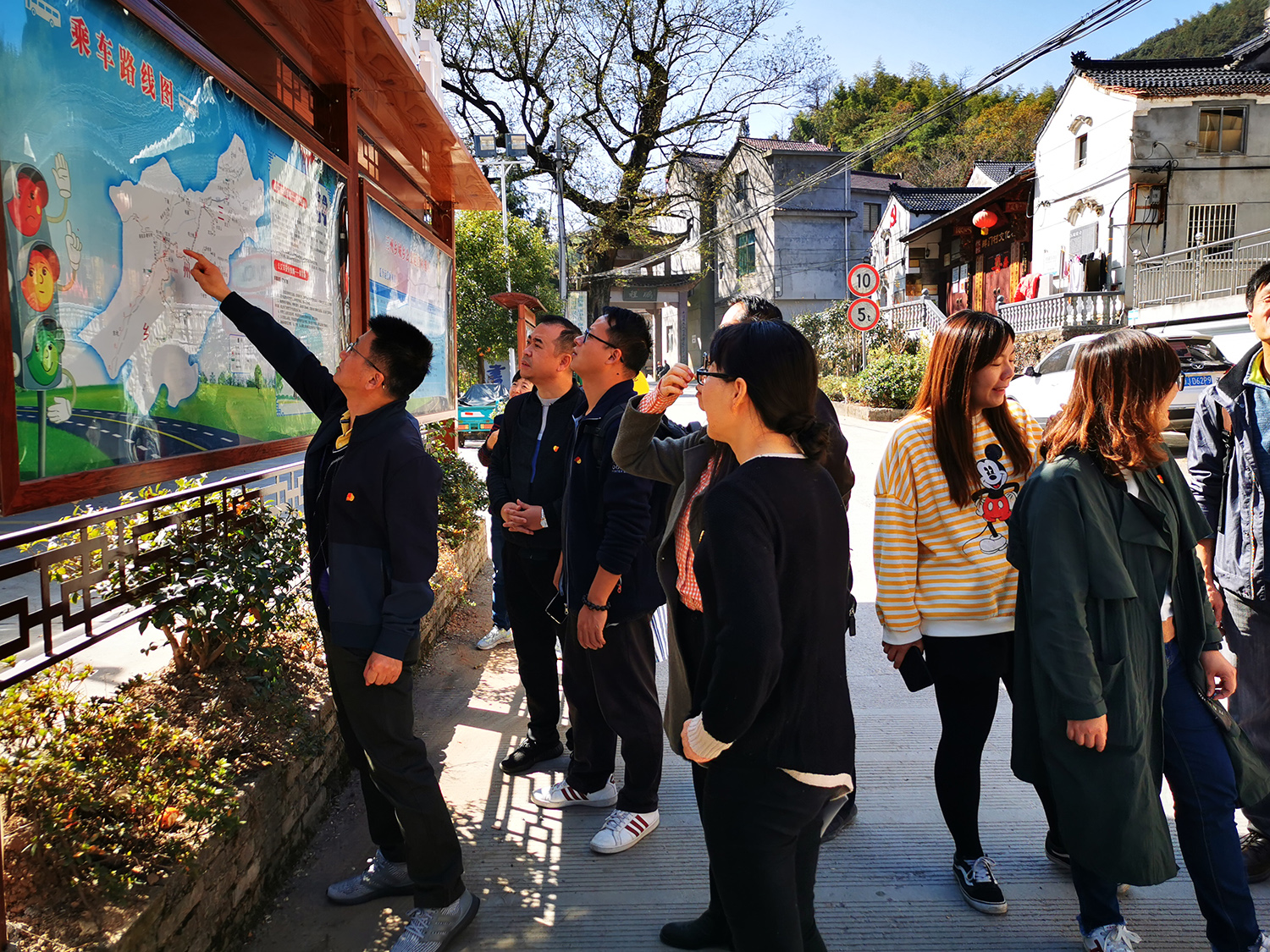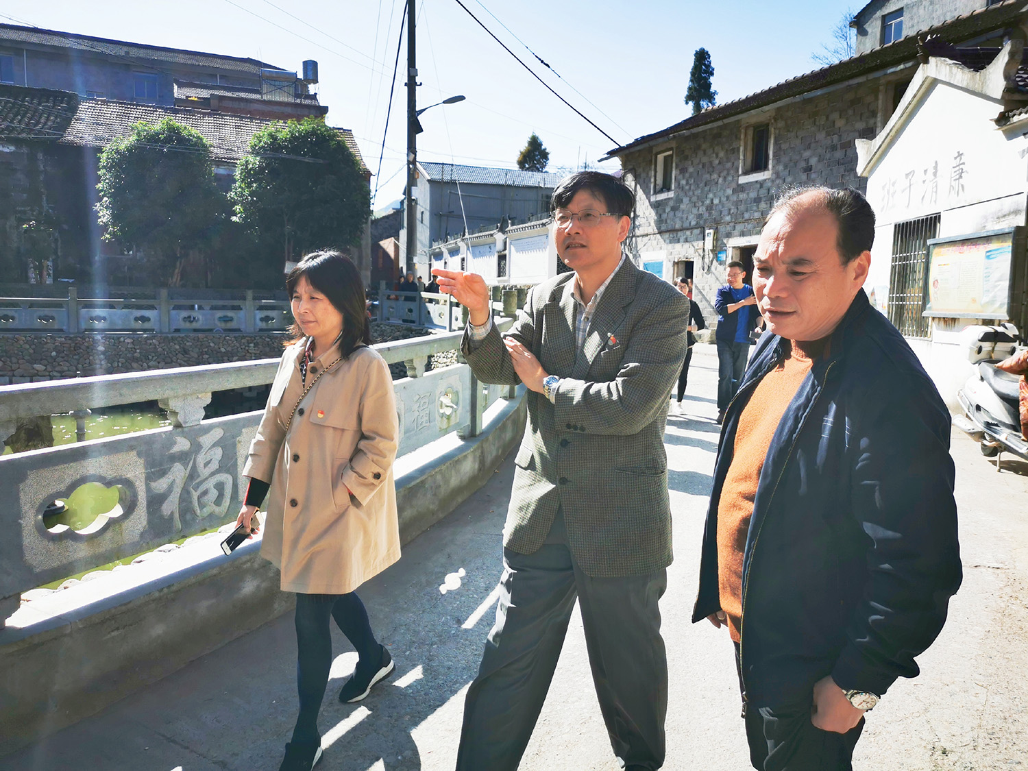 会后,党员调研团队马上前往天台县平桥镇张思古村考察乡土风貌。平桥镇汤坚志镇长热情接待了调研团队一行并带大家进行了参观。张思大古村建于明成化年间,迄今已有540余年历史,村内古建筑保存完好,近几年经过新农村建设,发生了巨大变化。经地方推荐和专家审核,于2018年10月被农业农村部乡村产业发展司评为2018年中国美丽休闲乡村; 2019年1月,张思村入选第七批中国历史文化名村。前不久,省委书记车俊、省长袁家军在张思古村召开了全省深化“千万工程”、建设新时代美丽乡村大型现场会。