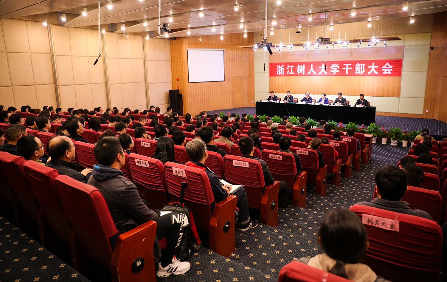 11月20日下午,学校在拱宸桥校区学术报告厅召开干部大会。省政协副主席、党组副书记、学校董事长孙景淼,学校副董事长、省政协常委、副秘书长、办公厅主任帅燮琅,省教育厅党委副书记干武东,全体校领导、全体中层干部、中层后备干部、教授,各学院办公室主任及分团委书记参加了会议,会议由校党委书记章清主持。