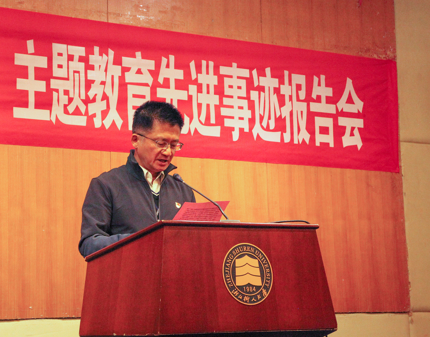 校党委书记章清教授在听完整场报告会后,对四位发言作报告的老师和同学的先进事迹给予的充分肯定和赞扬,并逐一点评,他在总结讲话中指出,一个学生,一名教师,一个学校要发展,必须要学会对自己所处的岗位予以坚守,教师的岗位是“讲台”,是“科研平台”,学生的岗位是“书桌”,是“课堂”,必须学会对自我的超越,要让自己的明天一定比今天更进一步,哪怕这样的进步十分微小,同时要要对“课堂”保持敬畏;章书记特别强调了,教师在大学的主要任务就是“走进课堂”,“深入课堂”,“活跃课堂”,“丰富课堂”,要明确自己的身份,明确自己的责任,明确自己的未来;最后,他引用宋朝晏几道一句名言:“若是初心未改,多应此意须同”,呼吁全体师生:作为浙江树人大学的一名老师,一名学生,都要做到“不忘初心,不畏未来”,要“牢记使命,牢记任务”,坚信只要共同努力,共同奋斗,我们个人的,社会的、国家的明天就一定会越来越美好。