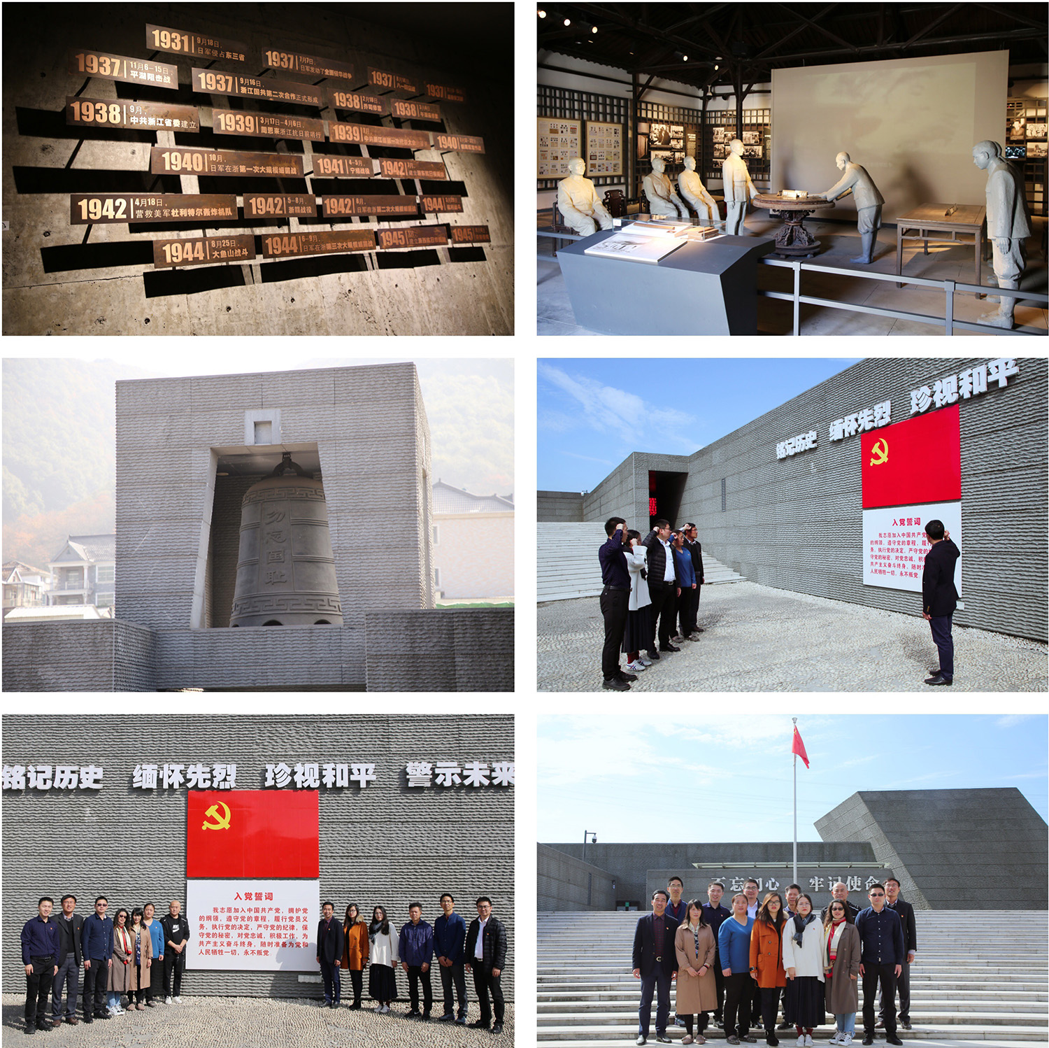 “沦陷—抗争—胜利”三部曲式的参观过程,让大家深切感受到抗战的艰辛和和平的珍贵。随后,杨汛桥校区管委会党员同志面对鲜红的党旗,重温入党誓词,进行庄严宣誓。