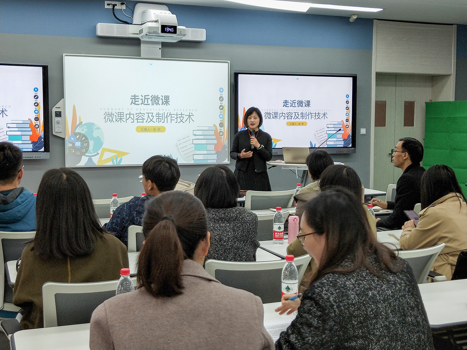 赵欣结合自己多年的教学经验、省教学技能竞赛特等奖获奖经验及多次获得省微课比赛一等奖的微课制作经验,详细介绍了什么是微课?为什么要做微课教学?哪些教学环节和教学内容需要借助于微课来进行更好的教学?介绍了微课制作流程、常用工具和资源的利用及微课教学设计的重点和难点。同时赵欣现场演示了如何制作一堂微课的设计。