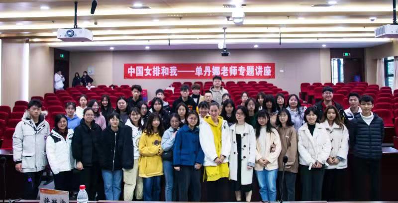 11月26日下午1点30,基础学院单丹娜老师在杨汛桥一楼报告厅给2019级同学讲述“中国女排和我”的故事,讲座由基础学院副院长许跃宇主持,邱辉明等学院领导和公体部、辅导员等教师到场聆听。
