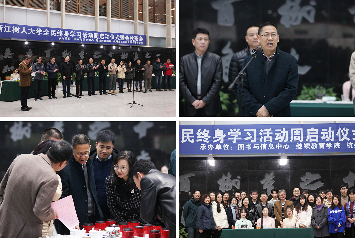 为了深入学习贯彻习近平总书记关于教育的重要论述和全国、全省教育大会精神,根据《教育部办公厅关于举办2019年全民终身学习活动周的通知》要求,11月27日,由树大图书馆和继续教育学院联合承办的“2019年树大全民终身学习活动周启动仪式暨金秋茶会”在杭州馆一楼拉开帷幕,副校长陈新民和来自各个部门的老师共同出席了开幕式。