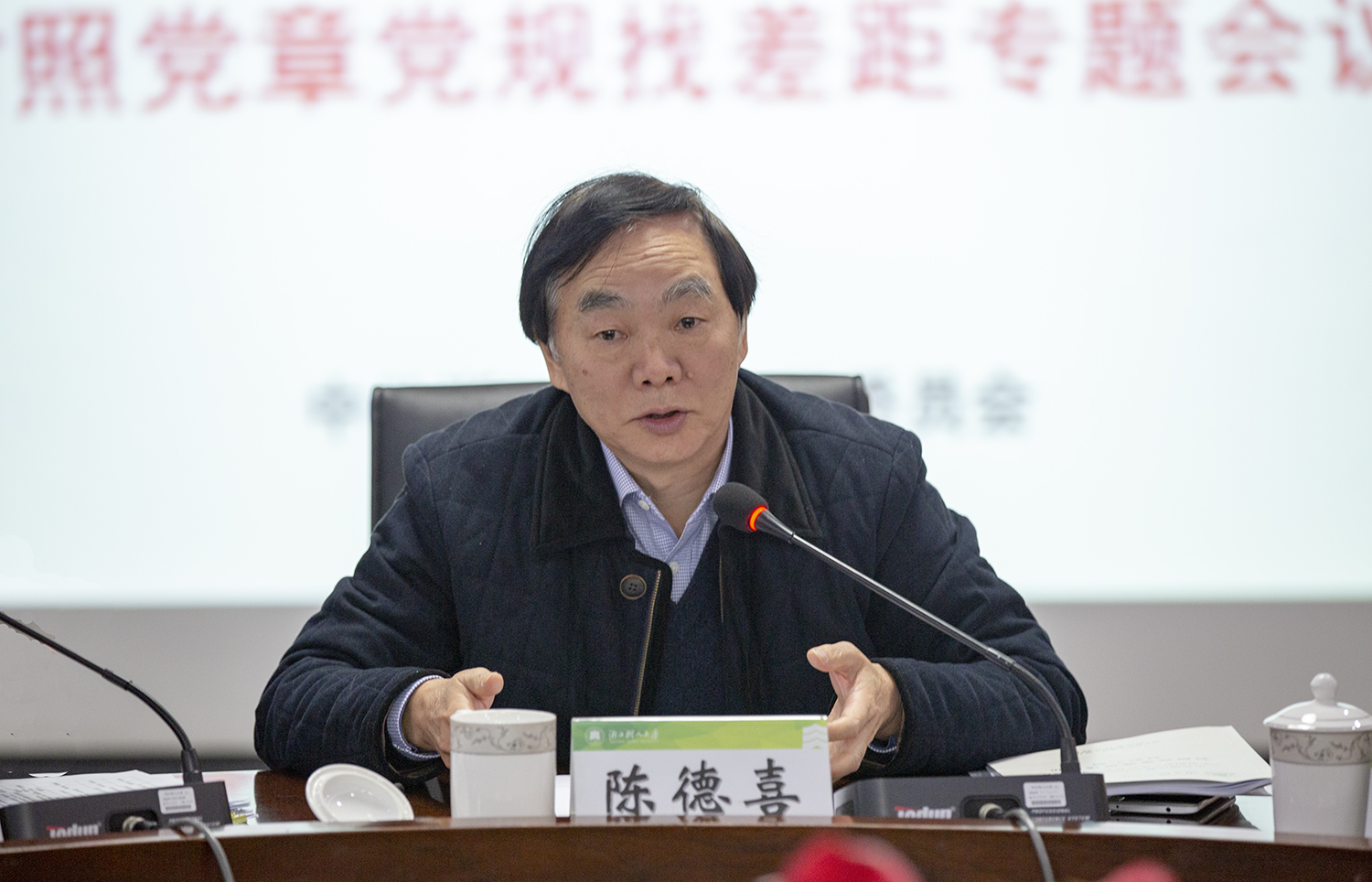 按照省委、教育厅党委部署和学校“不忘初心、牢记使命”主题教育总体工作安排,11月29日上午,学校在行政楼4楼会议室召开校领导班子对照党章党规找差距专题会,通过刀刃向内,自我检视,逐一对照,全面查摆问题,明确整改方向。省教育厅党委主题教育指导组组长、浙江师范大学原党委书记陈德喜到会指导并讲话,指导组成员教育厅组织处四级调研员王永芬列席会议,专题会由校党委书记章清主持。
