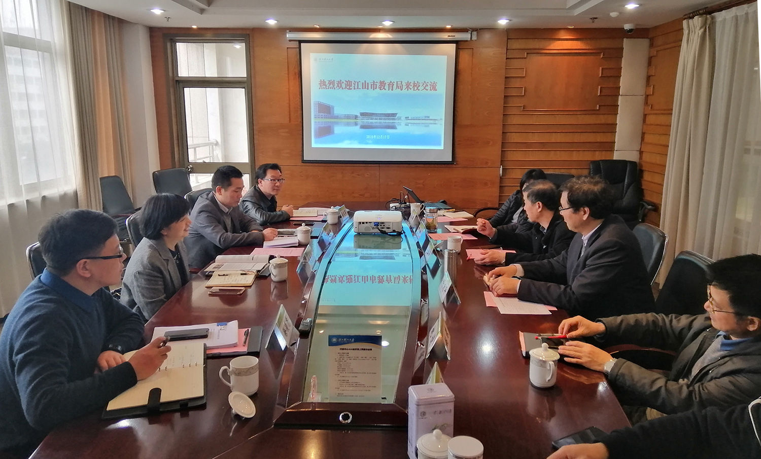 12月17日,江山市教育局党委书记、局长毛香水一行来校,就自主招生、中高职一体化招生等工作对接交流,叶时平副校长、徐绪卿教授接待了来访一行。江山市教育局办公室主任王以洪、江山中等专业学校党委书记徐凌志、江山滨江高级中学党总支书记、校长姜式军陪同调研,教务处、学生发展与服务处、城建学院相关负责人参与座谈。