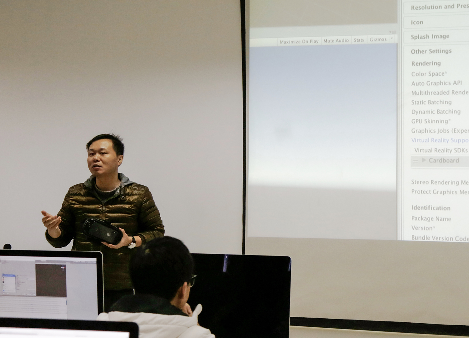 2016年为虚拟现实元年,成为新的产业风口,顾汉杰老师第一时间尝试将新技术纳入专业教学,并率先开设了《虚拟现实技术》课程。当时,XR(即VR、AR、MR统称)作为全球同步发展的最新技术,没有系统、成熟的教学资料,顾老师通过参加Unite培训与自学,将零碎、繁琐的技术进行整合,结合本专业学生的学习特点进行了优化,形成了一套容易上手、拓展性强的教学方案,为学生营造了一门新潮的应用型课程。虽然开设新技术课程极耗精力,当看到学生在课堂带上头盔兴奋体验自己所开发的XR程序时,顾老师觉得一切都是值得的。通过对相关技术的实践深化,顾老师指导学生已取得2项国创、5篇学术论文、8项软件著作权的成绩。不仅如此,新技术的学习也为个人科研水平的提升提供了助力,顾老师现已主持虚拟现实技术主题的浙江省科技厅公益技术项目、浙江省文化厅科研项目各1项。