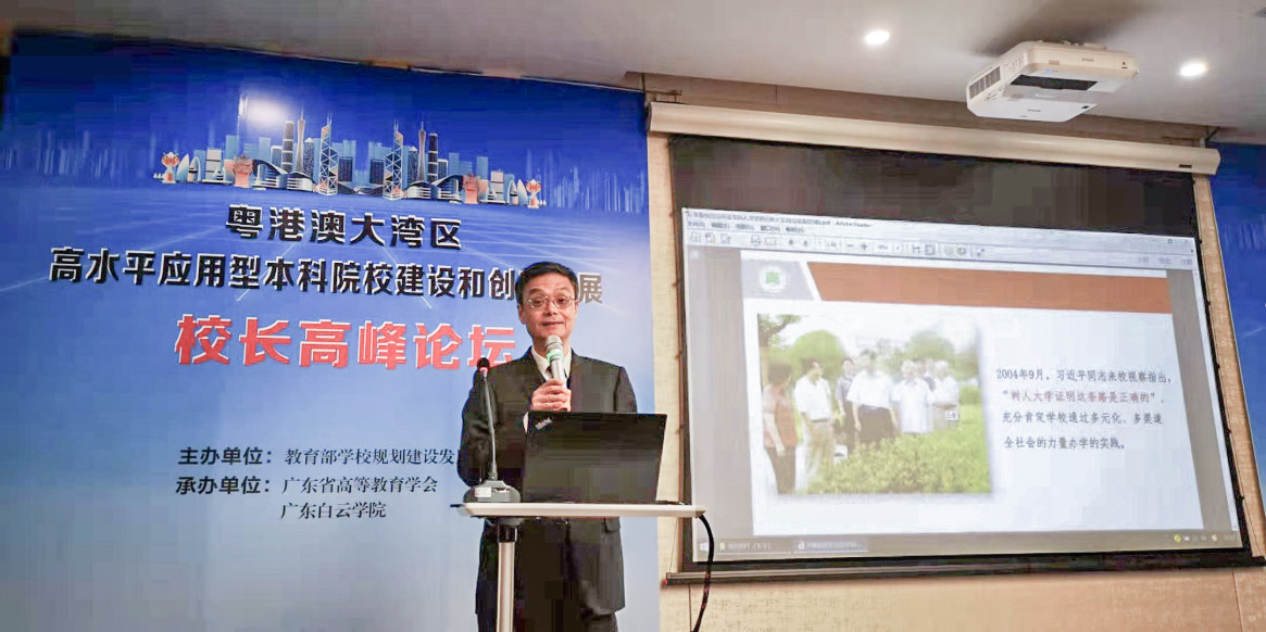 12月19日,由教育部学校规划建设发展中心主办,广东省高等教育学会、广东白云学院承办的“粤港澳大湾区高水平应用型本科院校建设和创新发展论坛”在广州举行,李鲁校长应邀参加会议,并以《应用型本科人才培养的树人实践与探索》为题,介绍了我校自2004年以来围绕高级应用型人才培养开展的探索。