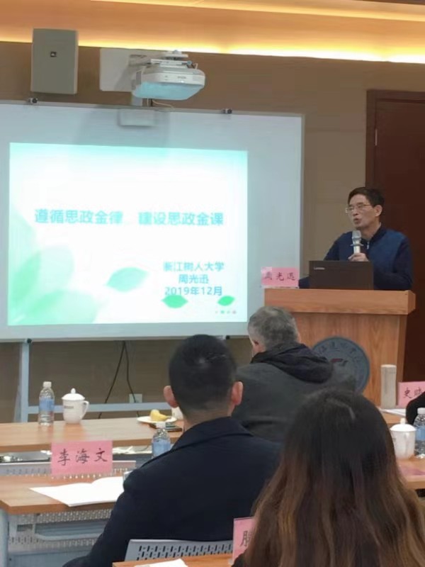 21日,周光迅院长在会上做了题为《遵循思政金律,打造思政金课》的主题发言,指出思想政治理论课是落实立德树人根本任务的关键课程,党和国家高度重视思想政治理论课建设。思政课建设要遵循思政“金律”,培养思政“金师”,努力打造思政“金课”。周光迅院长还着重介绍了我校思政课建设取得的成绩和相关经验,並简要介绍了明年10月我校筹备举办研究会年会的初步设想。