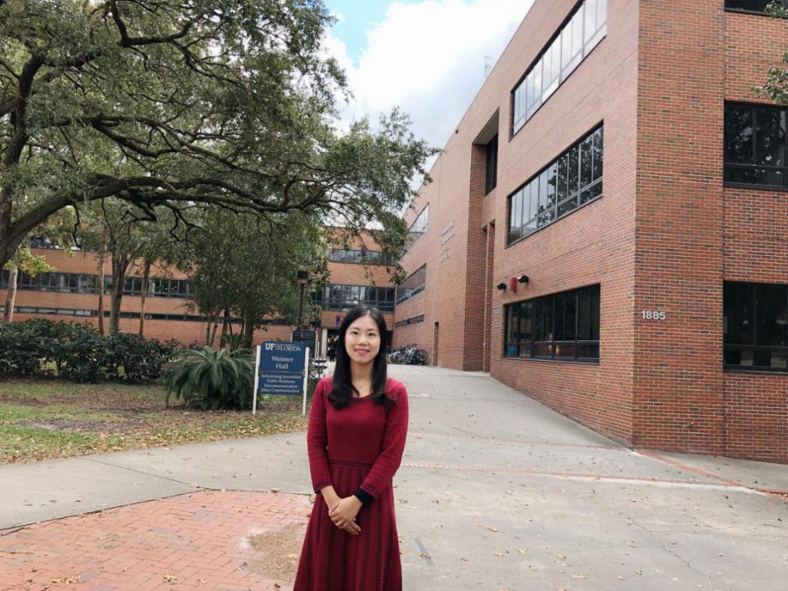 2016年,她前往美国佛罗里达大学新闻与传播学院进行为期一年的访学,师从传播学教授,同时也是美国知名的纪录片导演Churchill Roberts,开展学习和科研工作。在这一年的时间里,她付出了很多努力,也获得了许多成长。访学期间,她常常挑灯夜读,为一个选题或问题连看十几本著作,翻阅各种文献资料,高强度的学习也让她对美国新闻与传播学的教学和科研体系有了新的认知。回国以后,她将所学所思与教学相结合,运用到自己的课堂之中。