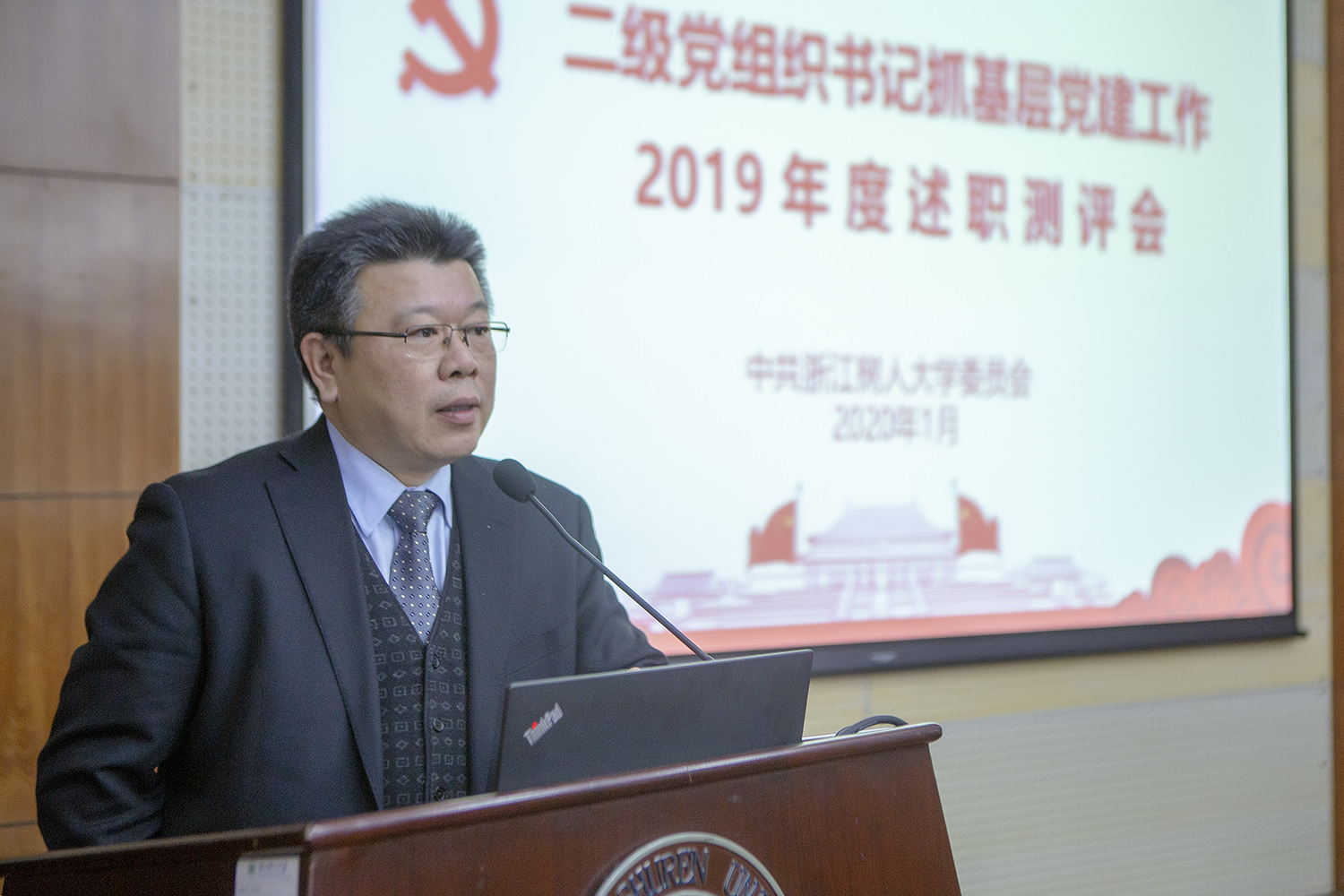 1月8日下午,校党委在行政楼六楼会议室组织了2019年度二级党组织书记抓基层党建工作述职大会。校党政领导班子成员、各党群部门、二级党组织负责人和支部书记代表参加了会议,会议由人事组织处处长周朝成主持。