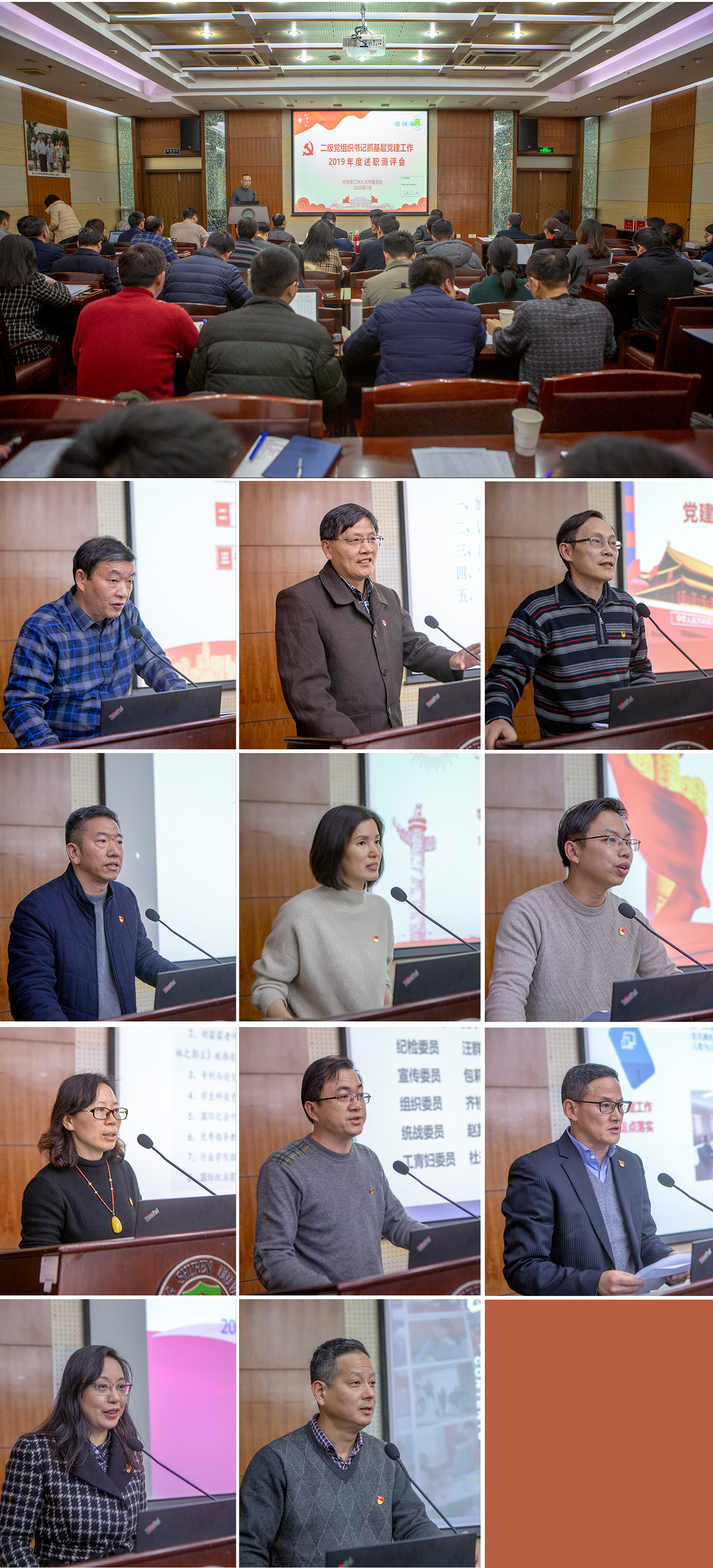 会上,13位二级党组织书记围绕2019年度二级党组织履行抓基层党建工作责任制情况、完成党建重点任务情况、存在问题的分析和思考、下一步加强基层党建工作的具体举措等方面,尤其重点针对“不忘初心,牢记使命”主体教育开展成效进行了现场述职以及书面汇报。与会同志在听取和阅读书记抓基层党建工作的述职汇报后,进行了民主测评。