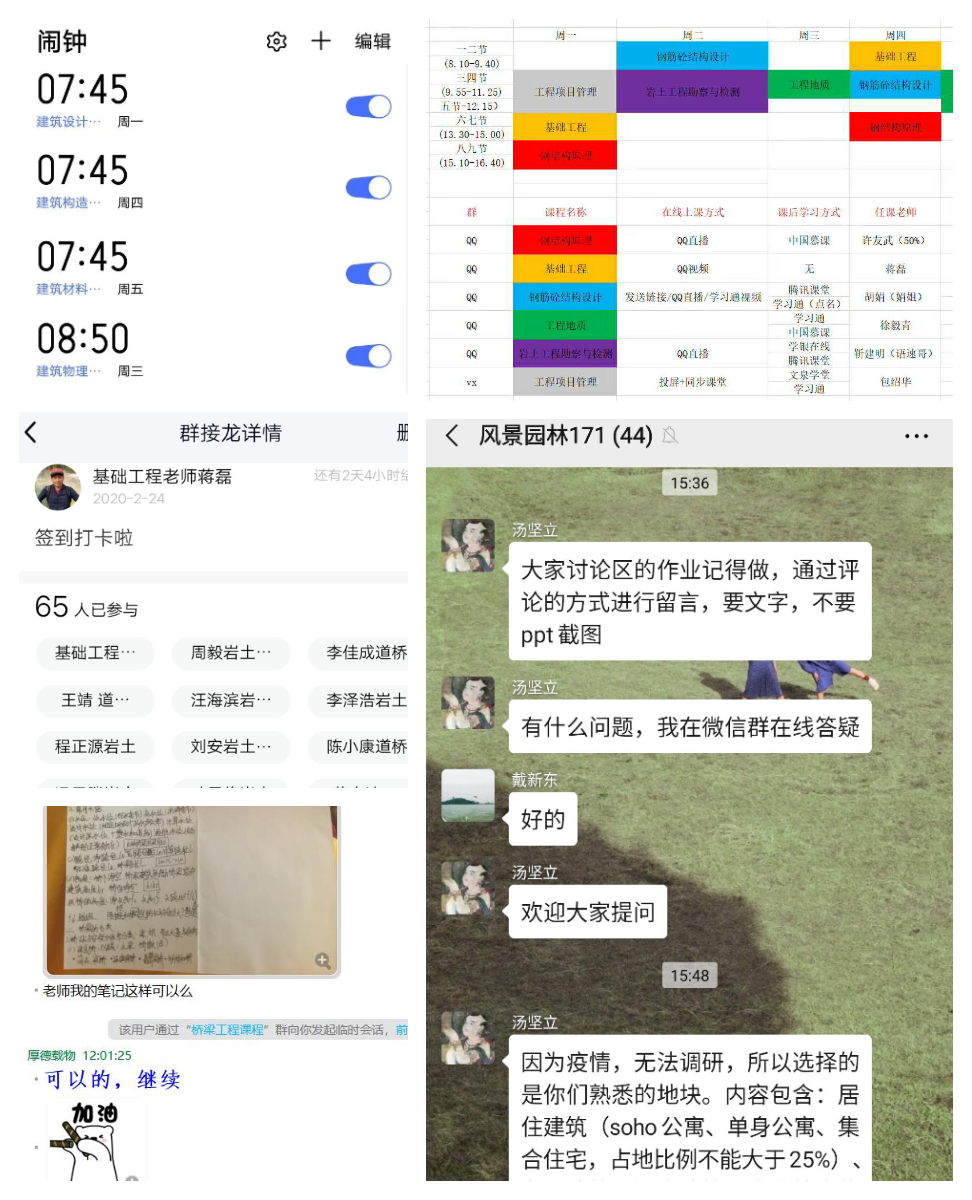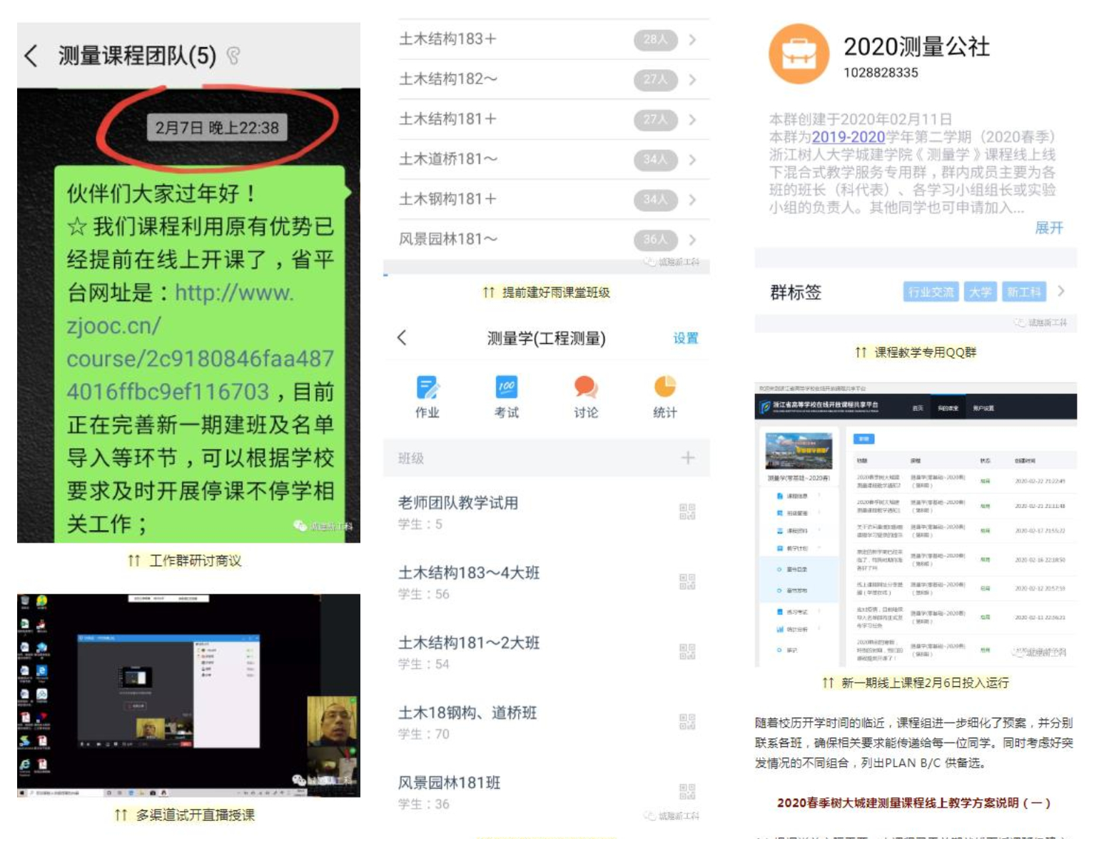 为保证学生在线学习效率与效果,老师们在教学平台和教学工具上均做了几手准备,并且至少进行了一次课堂预演。尤其是土木工程专业的测量学团队,同心同力,提前谋划,制订了详细的线上教学方案,并进行了公众号推文。