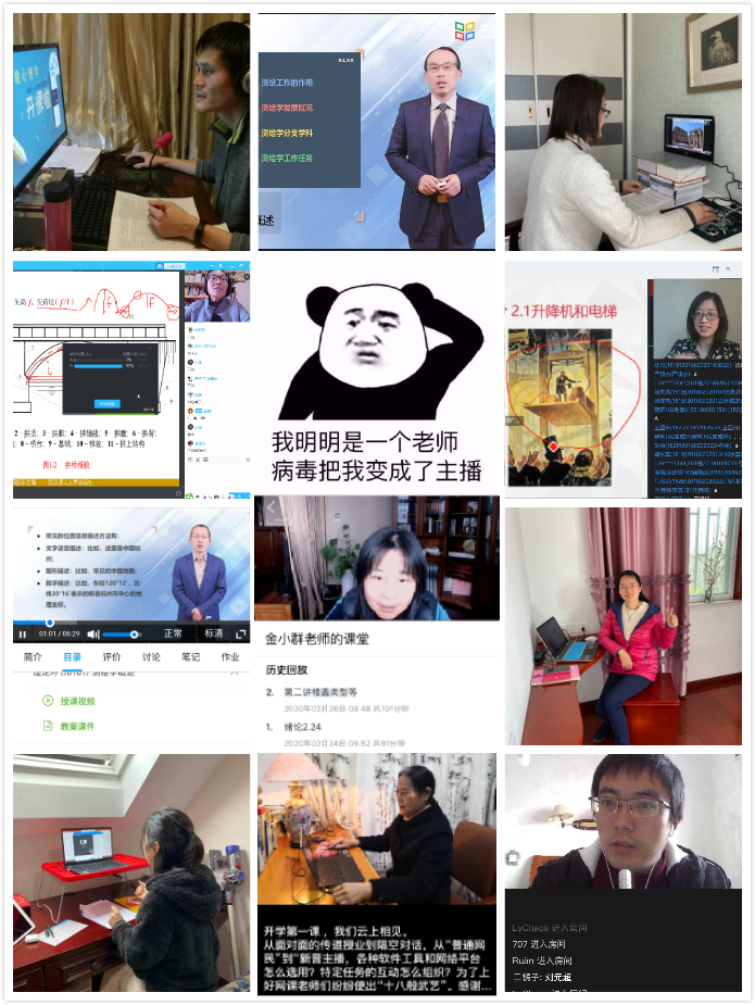 2月24日,学院87门课程38个班级陆续按照课表开课,虽然部分学习平台出现流量过大学生无法进入的情况,但老师们及时用上备选方案,确保课程顺利进行,课堂整体情况良好。认真“营业”的老师们使出“十八般武艺”,通过“学习通/雨课堂/腾讯课堂/ QQ群直播/屏幕分享”等App软件组合上课, 一个个摇身一变,俨然成了网络“主播”。带着学生在线上对预习过程中的一些共性问题进行讲解分析、操作演示,组织学生在直播课堂上进行小组讨论等活动,互动完成授课、答疑等各教学环节。教师之间相互蹭课观摩,云端研讨,互助互学,共同提高。