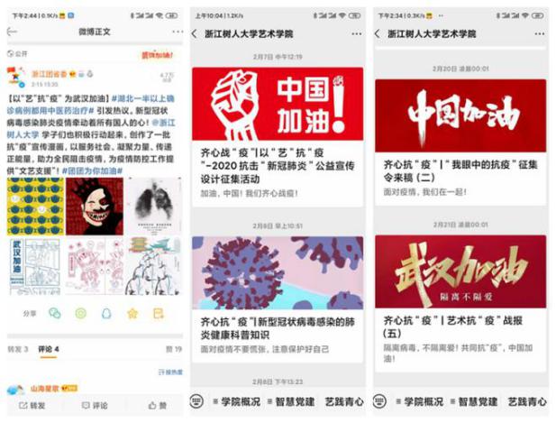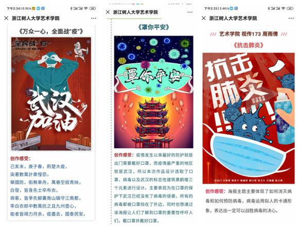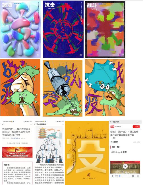 学院教工支部和学生支部共同联手,向全校学子发起了“以‘艺’战‘疫’——2020抗击‘新冠肺炎’公益宣传设计征集活动,共收到作品达到226件,学院公众号共推送了五期。其中艺术学院投稿176件,党员和积极分子投稿117件,部分作品得到团省委的关注并发布,两天阅读量就达“15万+”。此次活动全国高校中发起比较早,引起艺术类核心期刊《艺术教育》杂志社的关注,并进行了专题采访我院以艺抗“疫”活动和宣传报道。在这项工作中,二支部谢汇书记和学生二支部吕清海书记以及学生党员汪艺做了大量的宣传、发布、整理、推送以及后期的指导跟进。党员教师谢汇的海报设计作品《疫无"广"通则趋"没"》参加“科学、同心、生命——‘我们在一起’2020抗击’新冠肺炎’全球招贴设计公益征集活动”等。乔晖老师用20多天时间创作了《在一起》动画短片发布在教育之江、今日头条。