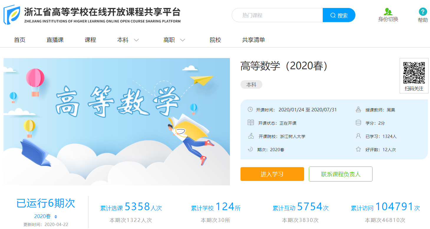 4月26日,浙江省教育厅公布了2019年省级精品在线开放课程认定结果,我校基础学院周昊老师主持建设的《高等数学》名列其中,这是我校第一门获得认定的省级精品在线开放课程,含金量极高!