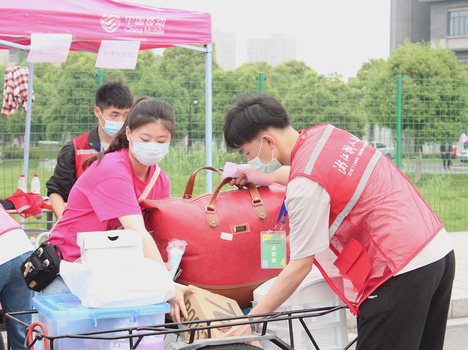 5月6日,146名2019级学生志愿者提前1天来到杨汛桥校区报到,他们通过短期志愿服务培训,迅速了解返校报到流程。5月7至8日,146名学生志愿者分为6个组穿梭在校园各个角落,在确保做好自身防护的基础上,为返校复学的学生和家长提供接站、校园通行码查验、身份信息核对、报到扫码登记、行李搬运等帮助,助力校区返校复学工作。他们以细心、耐心、暖心的服务,生动形象地诠释了志愿服务的深刻内涵和精神实质,赢得了学生和家长的一致好评。
