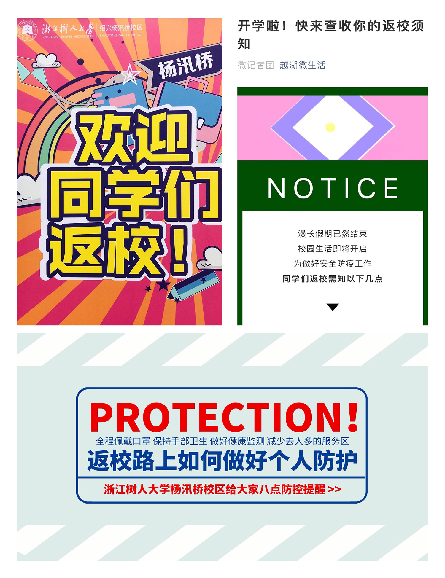 在周密部署返校复学工作的同时,杨汛桥校区还强化宣传引导,积极开展防控宣传教育,让师生知晓防控知识、了解疫情动态、绷紧防控意识这根弦。校区通过“线上线下”方式主动发声,以校区网站、微信公众号等多媒体平台,以及网络、电话交流沟通等多种方式,全面加强疫情防控知识的培训和宣传,引导学生主动防控、科学防控、群防群控,教育学生养成“戴口罩、勤洗手、常通风、少聚集”的生活方式和行为习惯,切实做好个人防护。同时,校区还设立心理咨询服务热线和网络平台,对学生进行心理疏导和学习生活指导。