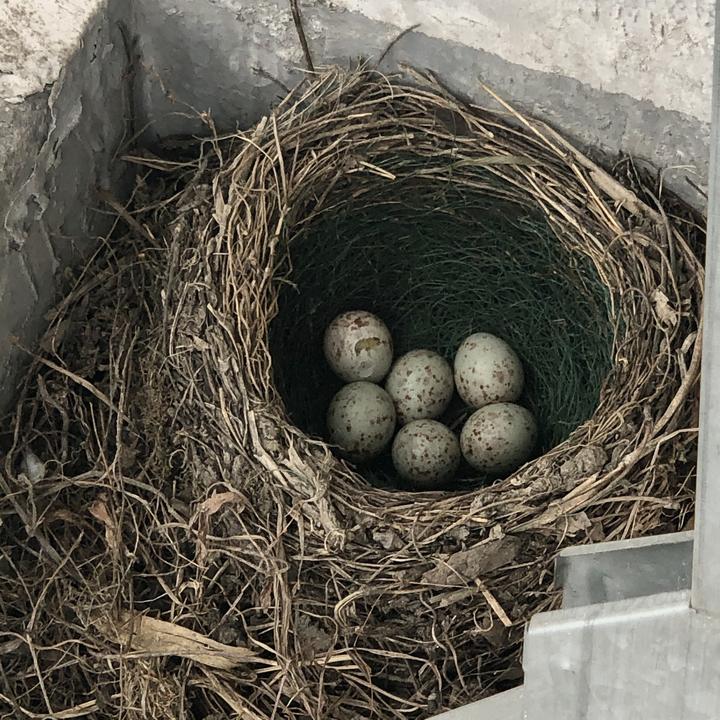 学生们发现那只孵蛋都雌鸟大部分时间都在鸟巢里,偶尔会飞走。有室友给它放了一点燕麦,但是它并没有吃。随着时间推移,她们又发现窝里都鸟已经少了一枚,原先一枚有些破的蛋已经被淘汰了。