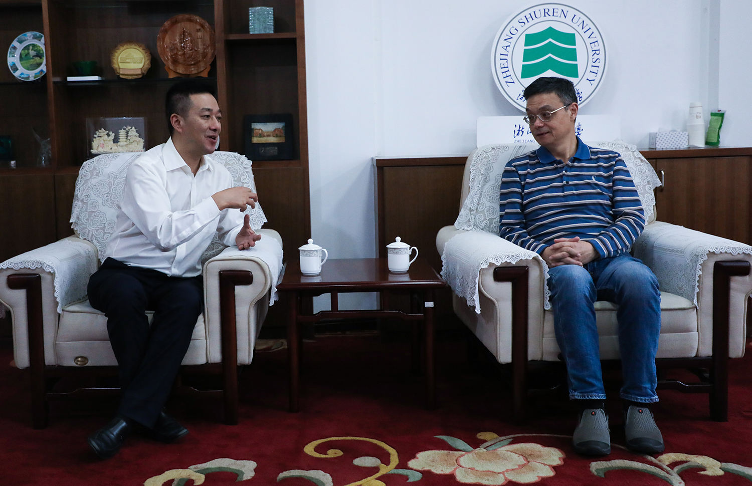 李鲁对陈荣世一行来访表示热烈欢迎,并简要介绍了学校的发展概况和办学特色,他希望发挥学校的学科优势和人才优势,为景宁县经济社会发展作出贡献。陈荣世简要介绍了景宁地方经济社会的发展概况,目前已经形成了“南宇海、北飞科”鲜明的产业格局。他说,景宁县政府十分重视与高校的合作,这次回访浙江树人大学,是希望通过与树人大学的深度合作,助推地方经济社会发展和产业转型。