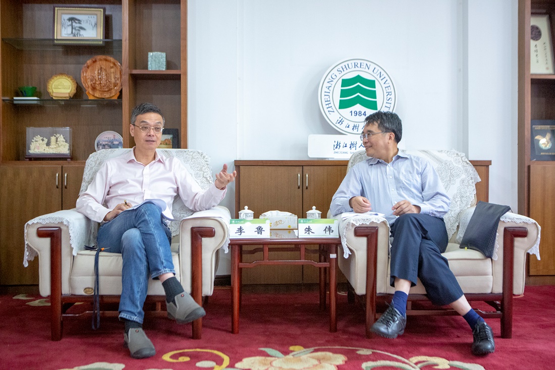李鲁校长对朱伟一行的到来表示了热烈的欢迎。他指出,浙江树人大学是省政协举办的学校,学校的发展需要继续汇聚各方力量,特别是省政协和政协委员的力量。我省政协委员中,既有来自各行业的劳模先进和领导干部,也有各领域的院士、专家学者和教授,他们丰富的理论知识、学术成果以及实践经验能对树人大学师生思想教育工作、学科建设和专业建设起到极大的推进作用。