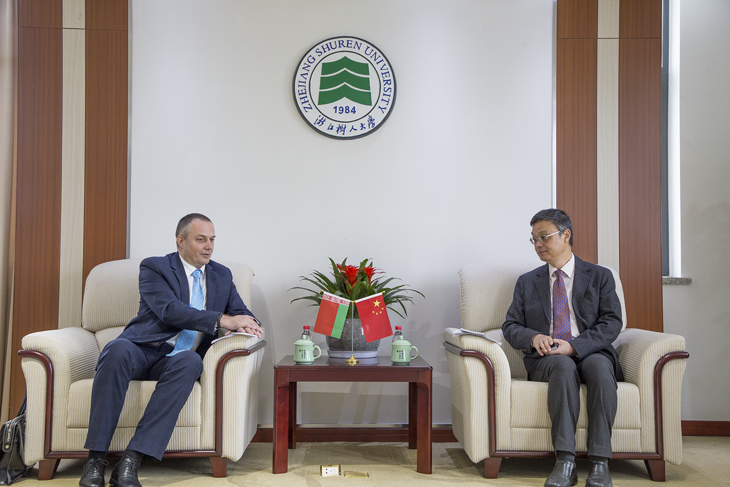 陈浚副校长在会面中简要梳理了我校与白俄罗斯高校、科研院所的合作历程。他指出,多年来我校在与白俄罗斯高校、科研院所的广泛合作中,不仅收获了友谊,还通过深入交流取得了很多科技和文化方面的成果。白俄罗斯国立大学的化学、计算机等教授团队与我校教师共同申报项目,结出了丰硕的成果。我校聘用的两位白俄罗斯国立大学高端专家荣膺“西湖友谊奖”;我校与白大连续举办了3届中白青年论坛;我校连续5年选派骨干教师赴白大培训,连续3年组织学生赴白大暑期研习。除白俄罗斯国立大学之外,我校还与白俄罗斯国立信息与无线电电子大学、白俄罗斯国立经济大学、白俄罗斯国家科学院新材料化学研究所、信息问题联合研究所都建立了合作关系。