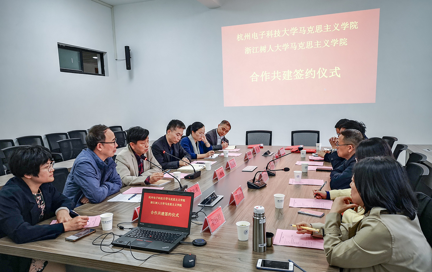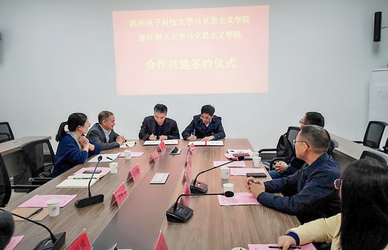 11月11日,我校马克思主义学院与杭州电子科技大学马克思主义学院合作共建签约仪式在杭州电子科技大学马克思主义学院会议室顺利进行。我方出席代表有陈新民副校长、校科研处胡峰俊副处长、马克思主义学院周光迅院长、张玲副院长、荆钰婷教授、王雪副教授,杭州电子科技大学出席代表有杭州电子科技大学党委副书记薛晓飞、校党委研工部傅君英副部长、马克思主义学院王海稳院长、黄岩副院长、黄核成书记、王胡英副书记。仪式上,薛晓飞副书记、陈新民副校长各自代表学校致辞,双方代表进行签约仪式并就合作共建细节进行磋商。