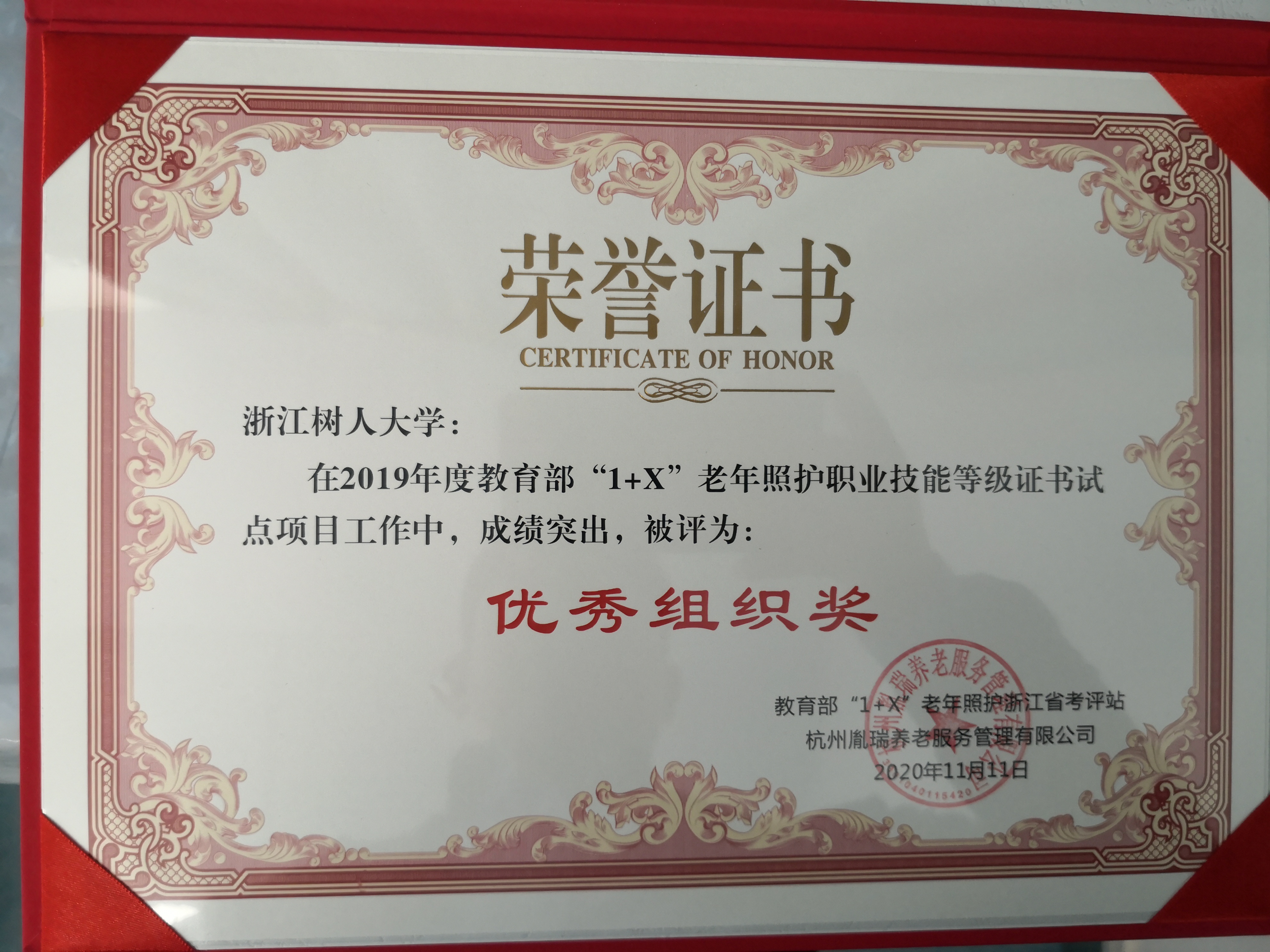 11月12日,在2020 第三届中国(钱江)养老产业发展论坛上,我校“1+X”老年照护证书试点工作被充分肯定,荣获浙江省2019年度试点工作优秀组织奖。