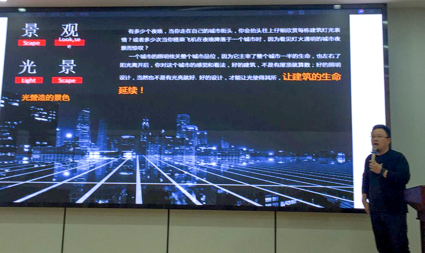 ▲荣新春总工在讲解照明设计对一座城市的重要性