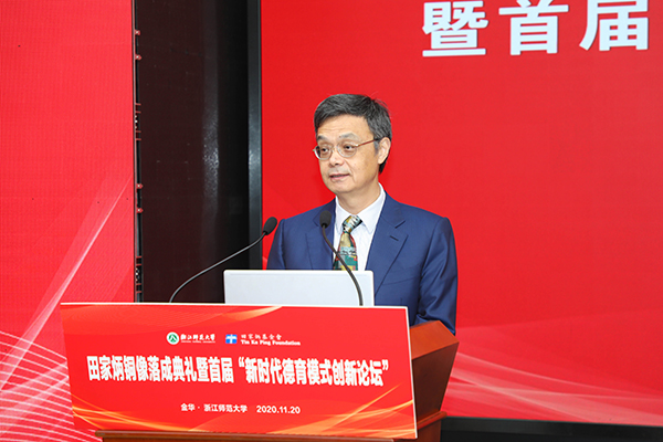 11月20日,浙江师范大学田家炳铜像落成典礼和教育与人类发展学院揭牌仪式隆重举行。校长李鲁应邀出席并代表学校致辞。
