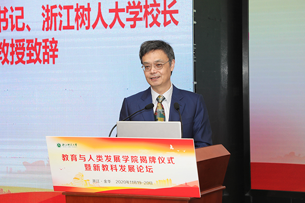 揭牌仪式上,李鲁校长代表学校发表致辞,对浙江师范大学教育与人类发展学院的未来表示期待。他指出,在即将步入中国特色社会主义发展新阶段的特殊时期,教育与人类发展学院的建设对于培养合格的未来教育接班人来说意义重大。他以不同地域的教育现状为例,从培养目标、教育思想、教育模式等方面辩证性进行探讨。“教育是国家管长远、管未来的基础之基础,我们要把教育学的研究成果写在大地上。”他希望在若干年后,浙师大可以为中国教育拿出更多的中国经验,向世界展示中国人才培养的优秀范例。